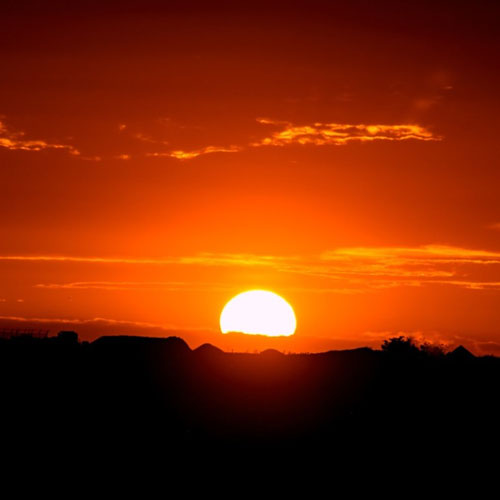 落山的太阳,从身后看